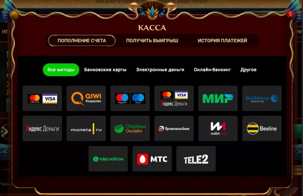 - Перейти в раздел «касса». Такой раздел есть в каждом онлайн-казино.
