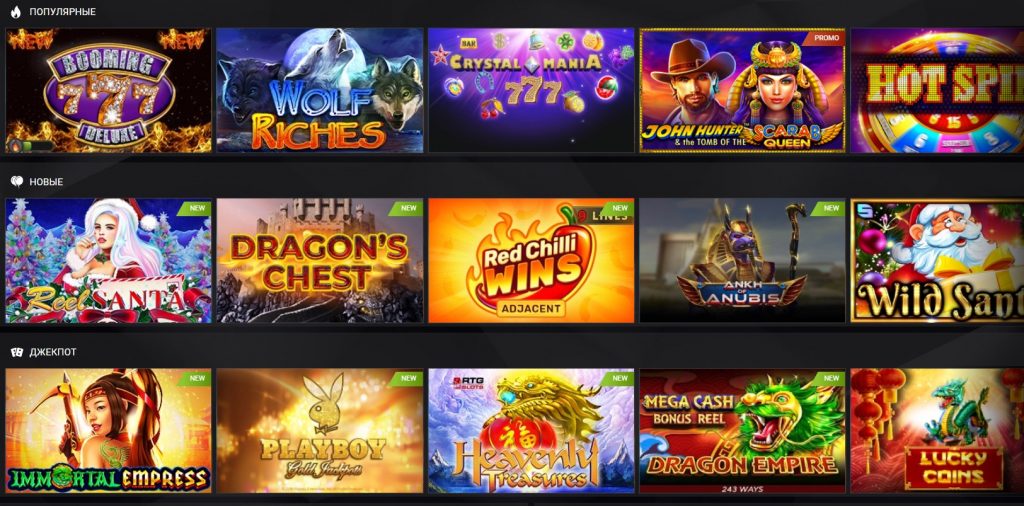 - Новинки – слоты, которые только недавно добавлены в казино.