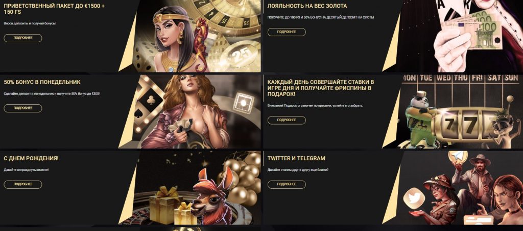 К основным преимуществам относят выгодную бонусную политику, наличие системы лояльности, большой выбор игровых аппаратов и платежных систем. Часто проводятся турниры, на кону которых крупные денежные призы, – 2-30 тыс. евро.