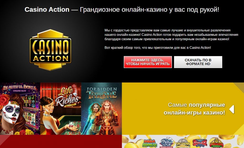 Casino Action - обзор официального сайта казино Экшн