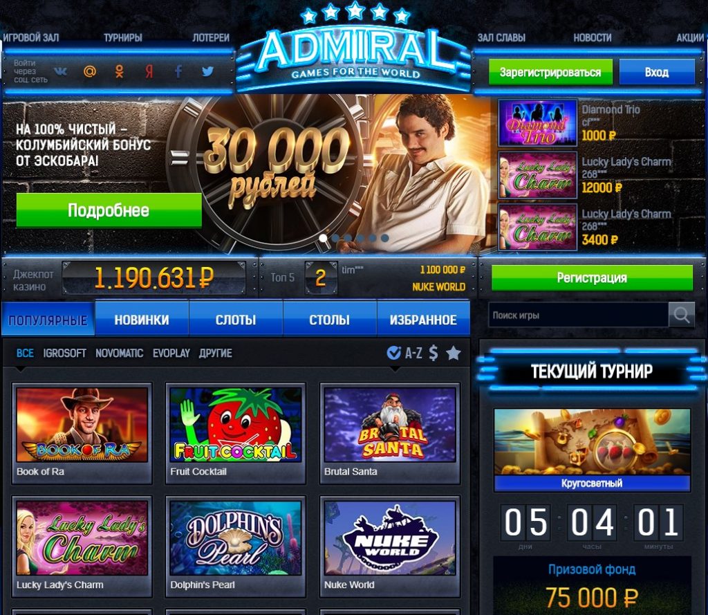 Официальный сайт казино Адмирал – регистрация