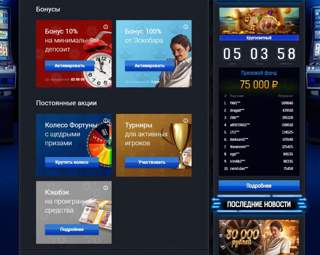 Лидирующие позиции в рейтинге лучших казино обеспечивают: щедрая бонусная политика, уникальная программа лояльности, «дающие» игровые автоматы, тематические акции.