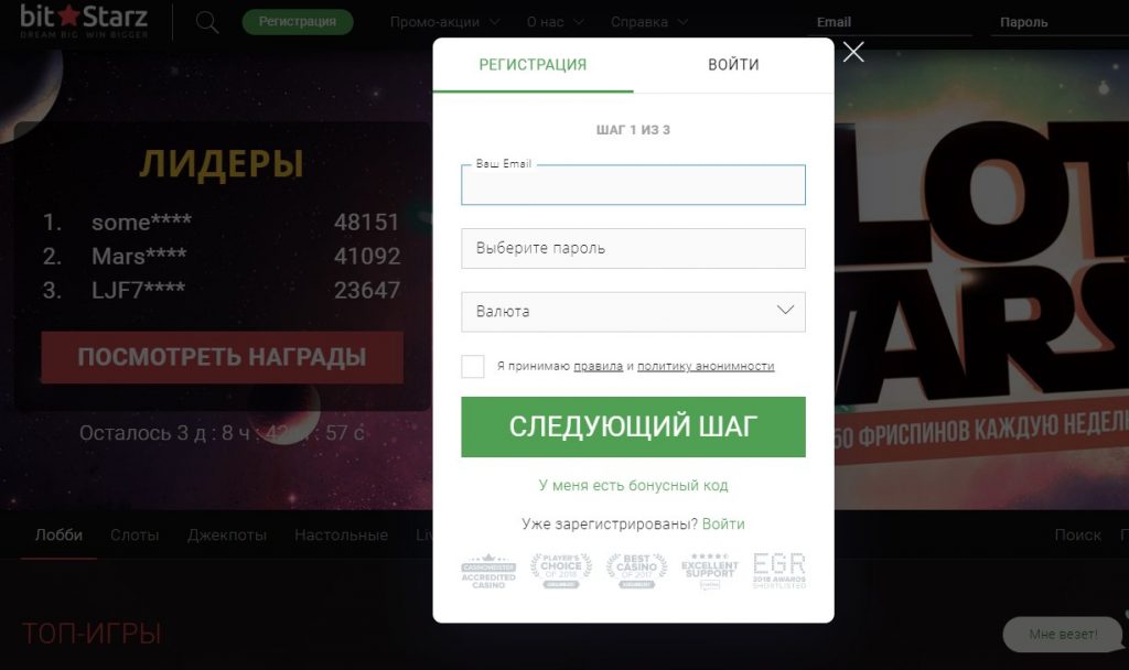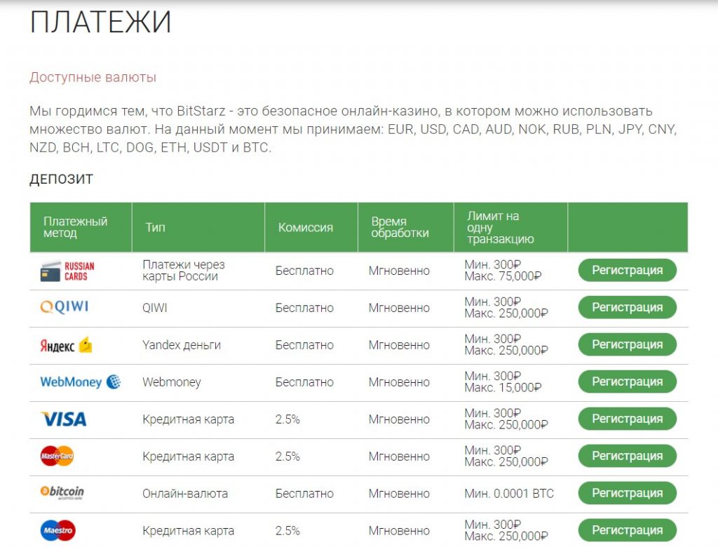 Финансовые операции в Битстарз казино проводятся практически мгновенно. Кешаут занимает не больше 10 минут, но при условии, что аккаунт предварительно верифицирован. Личные данные игроков надежно защищены, передача третьим лицам исключена. Минимальная сумма пополнения 300 рублей или эквивалент в другой валюте, запросить на вывод можно не менее 1000 рублей.