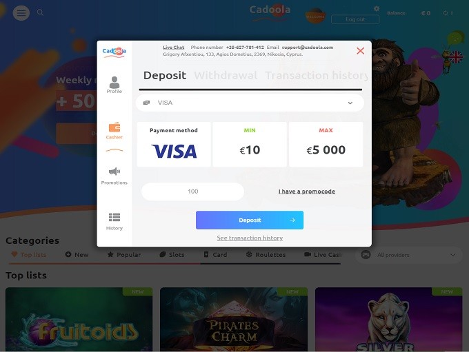 Официальный сайт Cadoola casino – регистрация и функционал