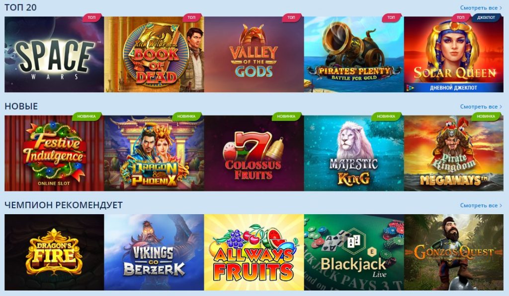 Самые выигрышные игровые автоматы казино Champion
