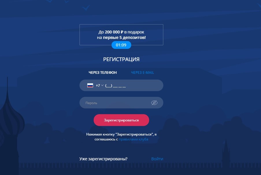 - Через номер мобильного телефона. Его вводят в соответствующем поле и придумывают пароль. Ниже ставят галочку в специальном окне, соглашаясь с правилами клуба. После нажатия на кнопку «зарегистрироваться» система попросит подтвердить введенный номер телефона. Для этого в появившееся окошко вписывают код, который придет на мобильный аппарат.