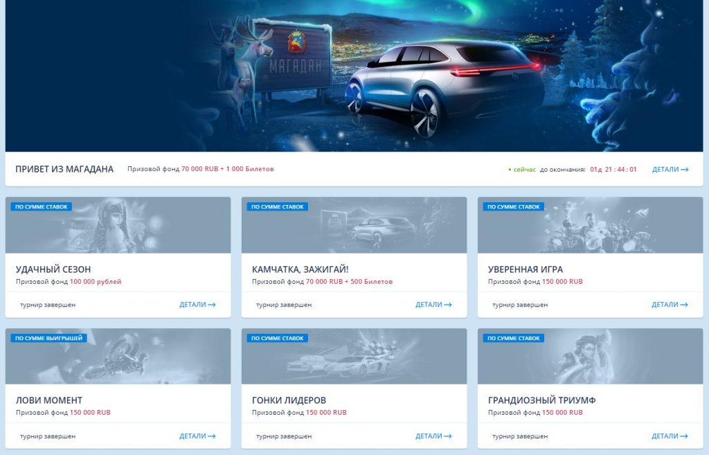 Периодически на портале проходят турниры, в которых разыгрывается накопительный джекпот. В качестве призового фонда используют определенный процент отчислений от ставок участников. Выигрыш распределяют между несколькими победителями. Главное преимущество турниров в казино Чемпион в том, что все они бесплатные. Игроки соревнуются между собой. Каждый клиент имеет возможность принять участие в соревновании.