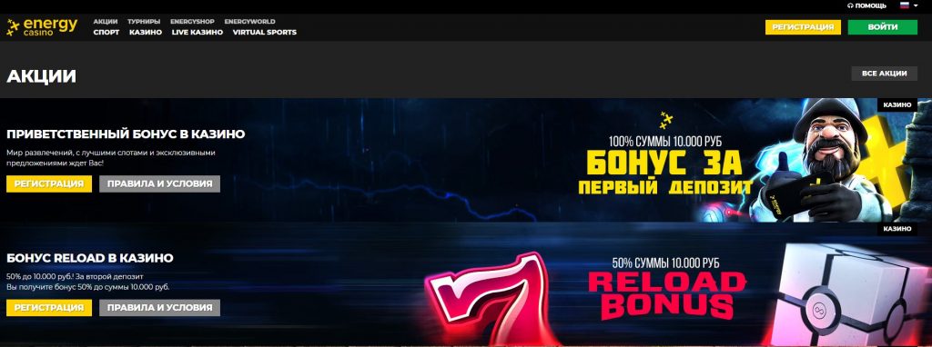 Для привлечения новых пользователей и поддержания активных игроков казино Энерджи предлагает различные подарки, проводит акции.