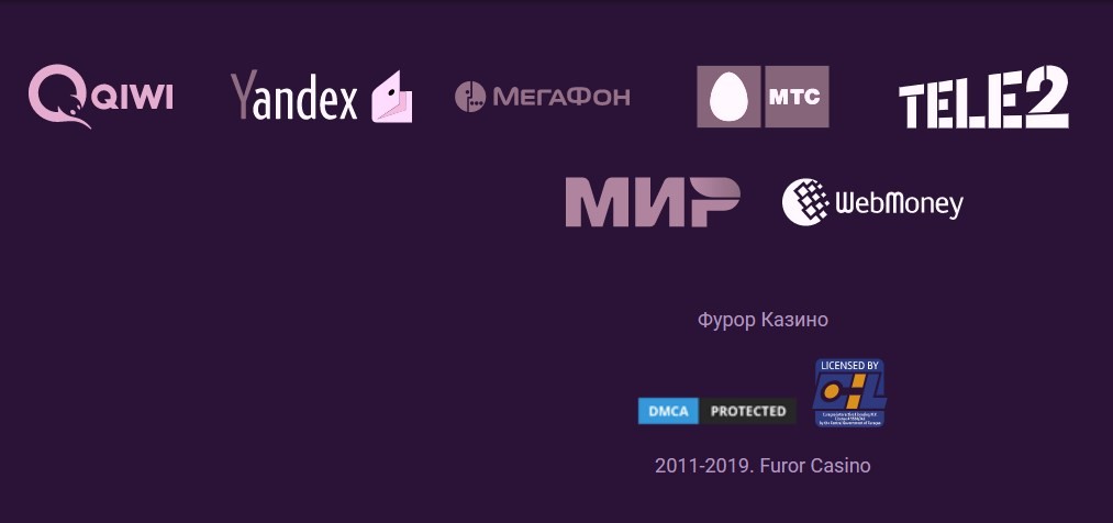 Платежные системы в казино Фурор: