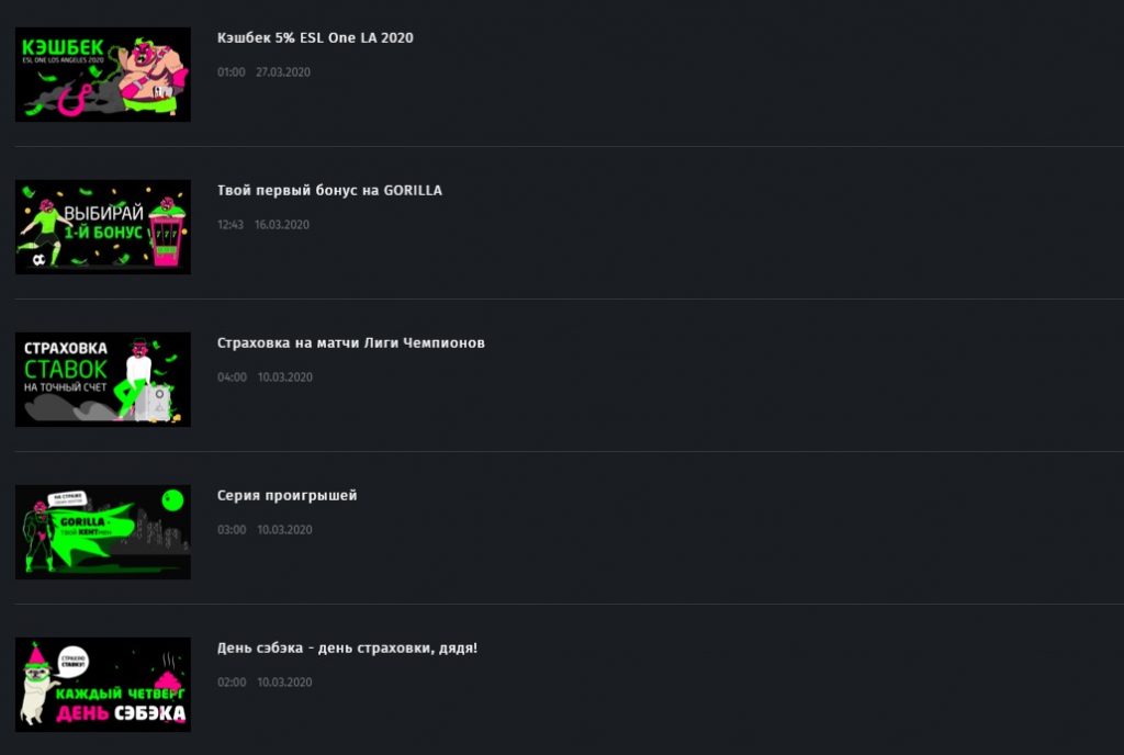 К основным плюсам Gorilla казино относят быстрые выплаты. Клуб никогда не затягивает с переводом выигрыша. Отдача у игровых автоматов на высоком уровне. Минимальный депозит всего лишь 50 рублей, что идеально подходит для новичков.