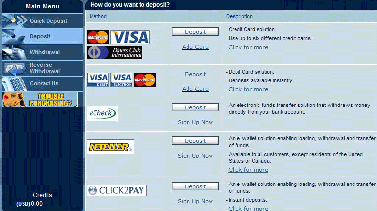 Клиенты могут вносить депозиты и выводить выигрыши в канадских долларах, евро, британских фунтах стерлингов, американских долларах.