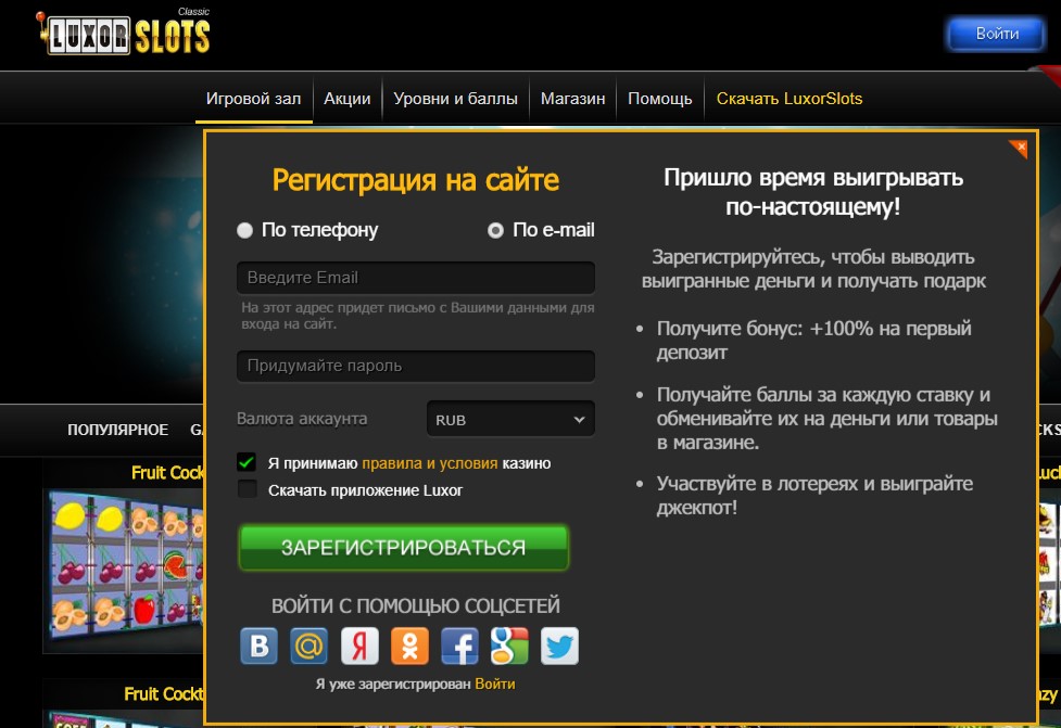 В клубе Luxor Slots игра на деньги доступна только зарегистрированным пользователям с положительным балансом. Для входа в казино нужно ввести свой логин (электронная почта или телефон), пароль, придуманный при регистрации.
