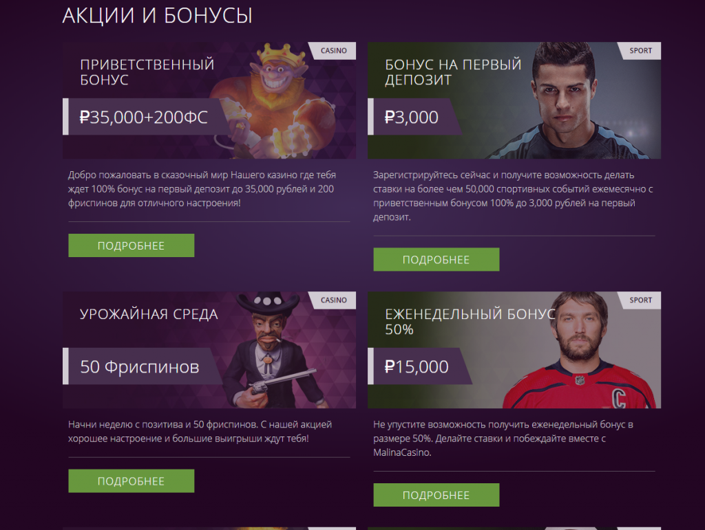 Казино малина бонусы и зеркало официального сайта