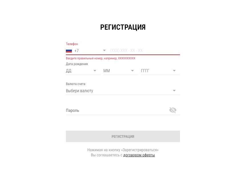 Каждый, кто желает играть на деньги, должен обязательно зарегистрироваться. Соответствующая кнопка расположена сразу возле логотипа казино. Создать игровой аккаунт можно двумя способами: заполнить специальную форму либо использовать аккаунт одной из социальных сетей. Зарегистрироваться могут только совершеннолетние пользователи, для некоторых стран имеются ограничения доступа.