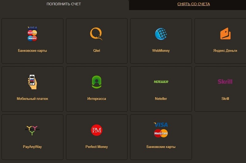 Для игры на деньги необходимо пополнить депозит, казино предлагает несколько способов внесения денежных средств на счет. Зачисление денег производится мгновенно, вывод может занять несколько суток, точные сроки зависят от запрашиваемой суммы и метода вывода. Важное условие – вывод доступен только на ту платежную систему, с которой геймер пополнял счет. Исключением является только внесение депозита при помощи СМС.