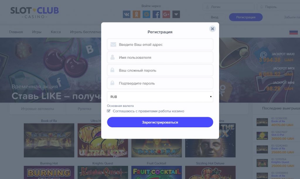 - Согласится с Правилами и условиями Slot Club casino.