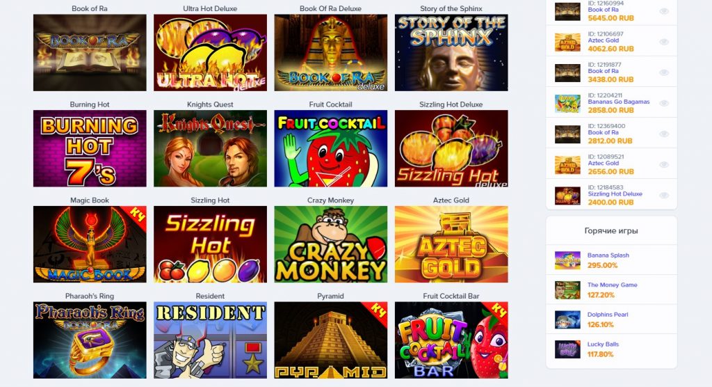 Самые популярные игровые слоты на деньги в Slot Club casino: Book of Ra, Aztec Gold, Champagne, Resident, Crazy Monkey, Sharky, Columbus, Lucky Lady Sharm.