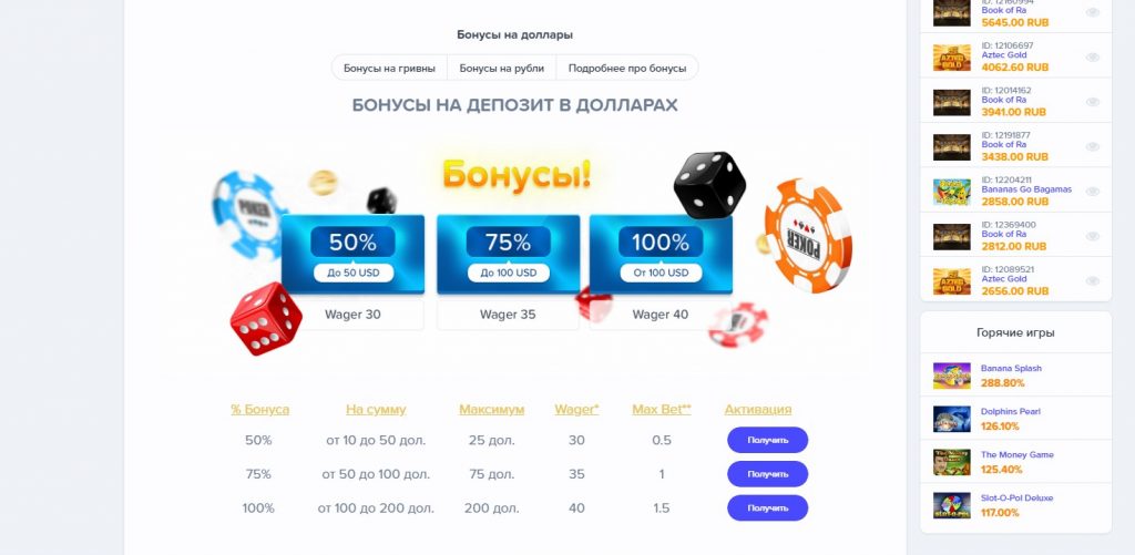 Слот Клуб казино ориентировано на русскоязычных гемблеров, предлагает делать ставки в российских рублях и гривнах, долларах.
