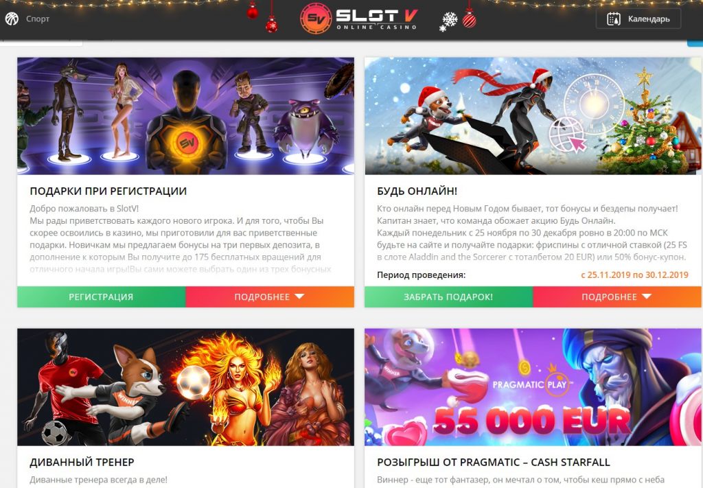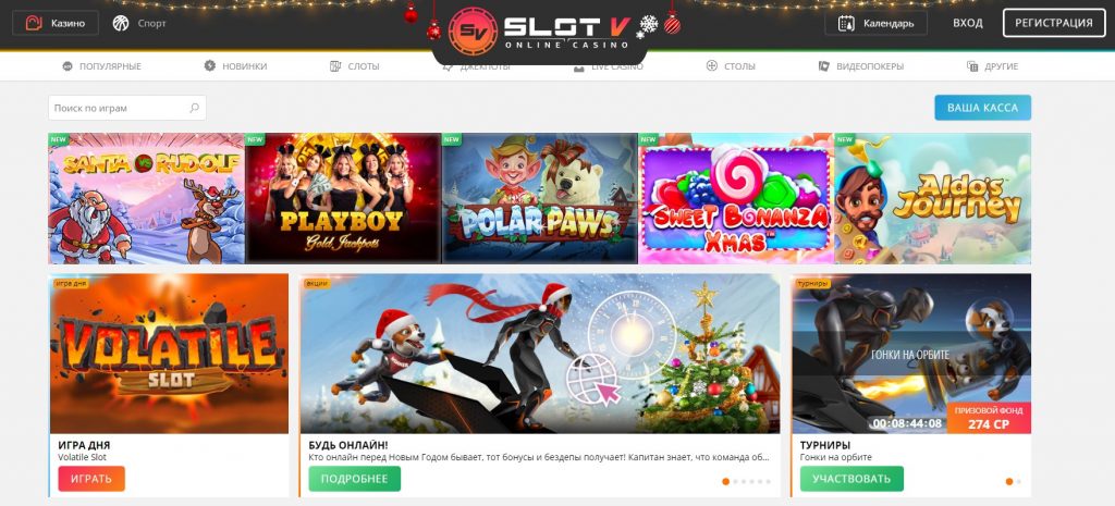Официальный игровой портал SlotV работает совсем недавно, но это не помешало ему заработать хорошую репутацию и много постоянных клиентов. После прохождения регистрации и пополнения счета для игры на деньги каждому пользователю положены бонусы. Если геймер активно играет, он повышает свой статус в программе лояльности и получает еще больше выгоды. Азартный ресурс однозначно стоит внимания, тут играют и выигрывают.