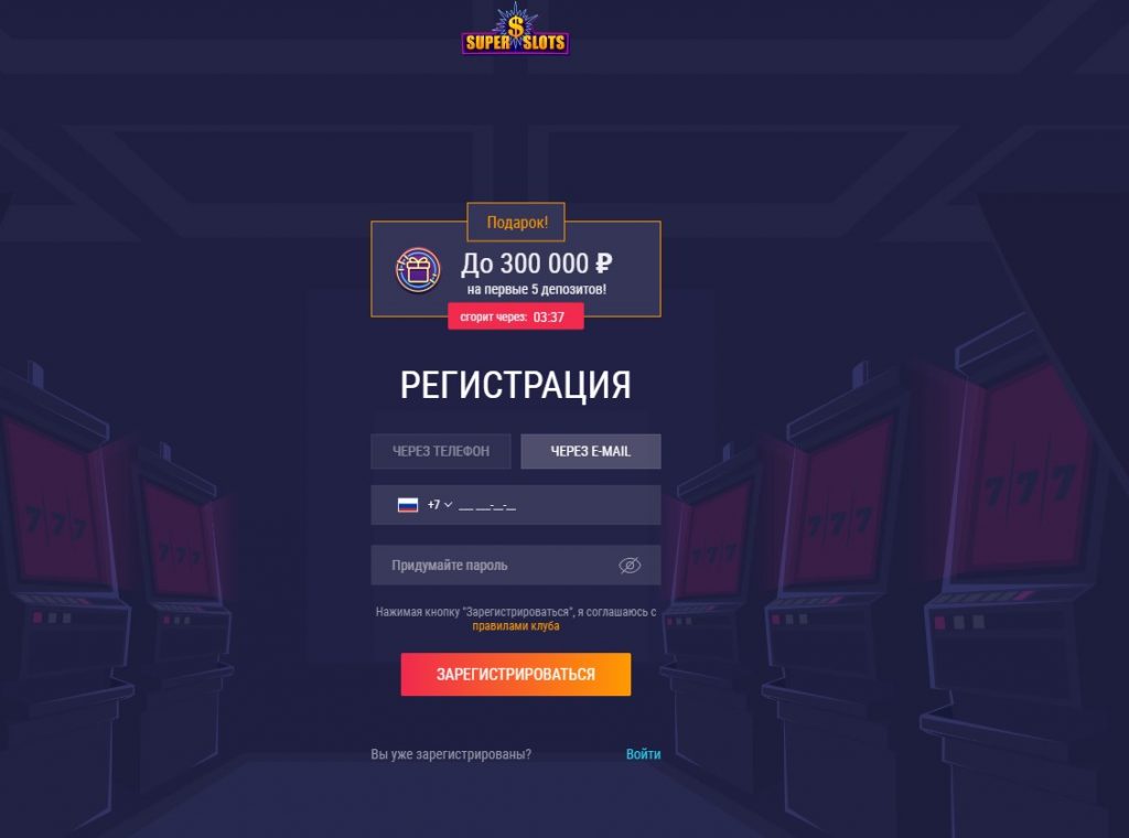 В казино Супер Слотс играть на деньги можно только после регистрации, которая доступна лицам старше 18 лет.