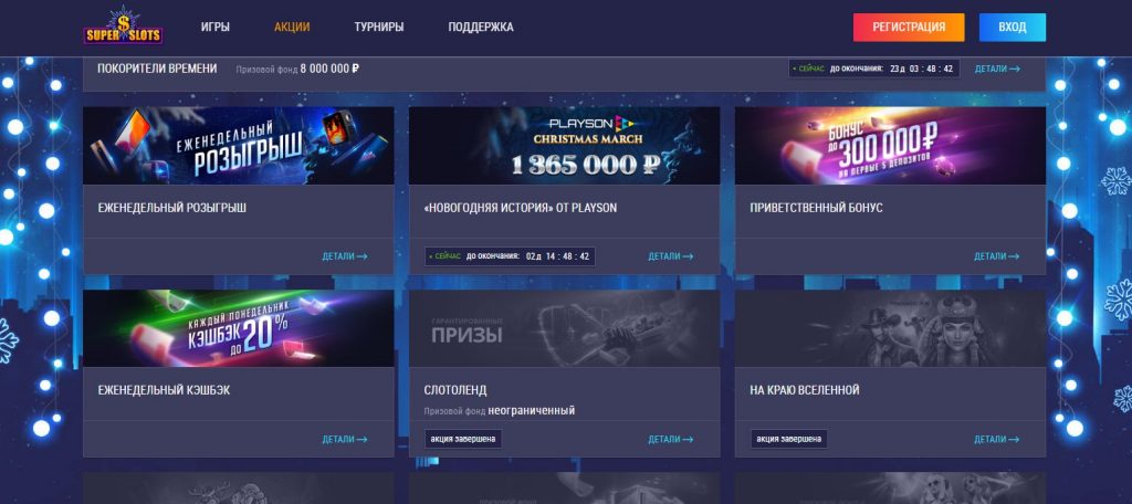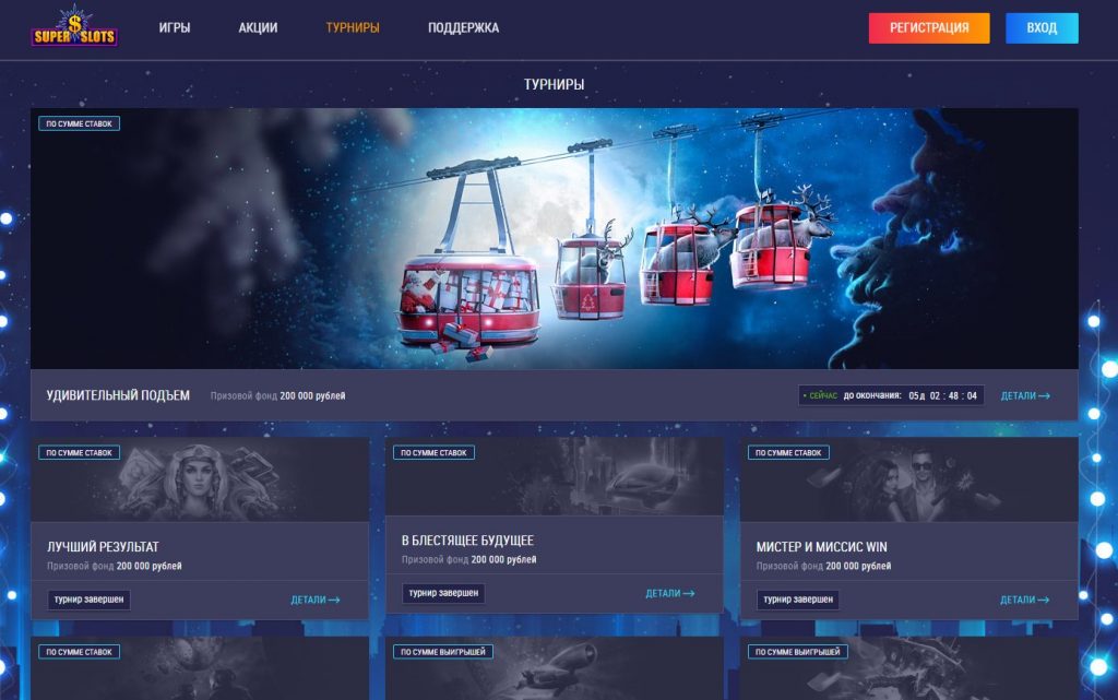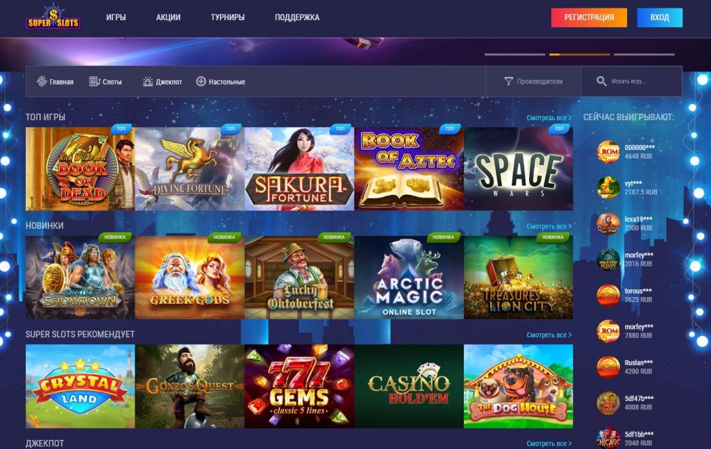 Super Slots Casino отличается широким выбором азартных развлечений, интересными и выгодными акциями, частыми турнирными соревнованиями и др.