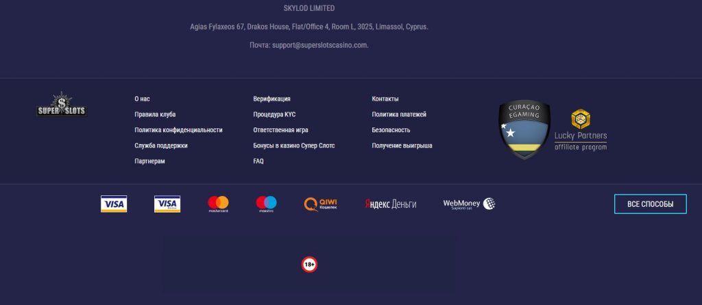 Администрация SuperSlots Casino заботится о пользователях, поэтому всегда в наличии несколько действующих зеркал. Их можно получить в техподдержке, самостоятельно найти в социальных сетях.