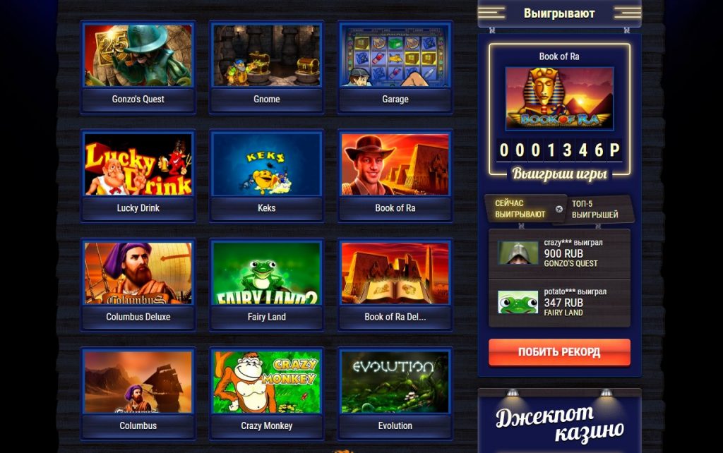 - Новички портала обычно посещают вкладку с популярными играми, поскольку здесь есть шанс найти модели, которые приносят неплохие деньги. Здесь обычно находится около 50 лучших слотов, которые пользуются наибольшей популярностью. Среди них стоит назвать: Book of Ra, Сумасшедшие обезьянки, Resident, Фруктовый коктейль, Bananas go Bahamas, The Money Game, Dolphin’s Pearl и Reel Catch.