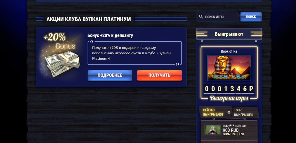Официальный сайт Вулкан Платинум – регистрация и вход