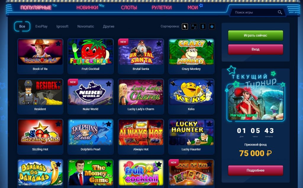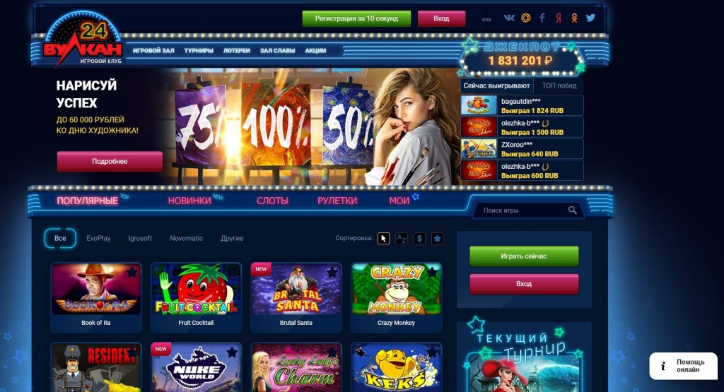 Часто новички после регистрации в Вулкан 24 интересуются, какие автоматы являются самыми дающими. Если верить отзывам, то 5 самыми «дающими» слотами являются Book of Ra Deluxe, Gods Temple Deluxe, Resident, Game of Thrones, Lucky Lady’s Charm. У всех этих одноруких бандитов хорошая отдача, и при этом вменяемая волатильность, поэтому выигрышные комбинации выпадают достаточно часто.