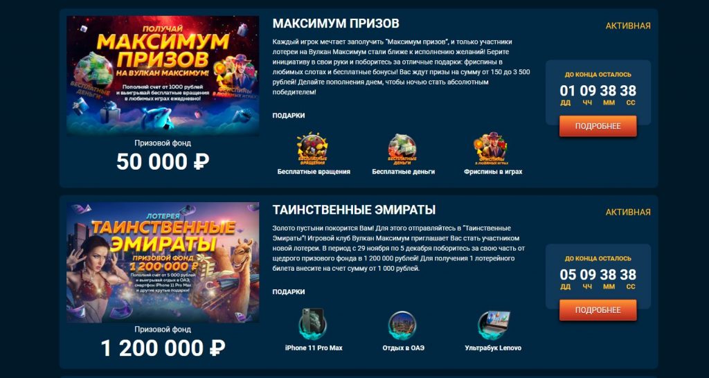 В казино Вулкан Максимум постоянно проводятся турнирные соревнования. На кону всегда крупный приз – 200-300 тыс. рублей. Некоторые турниры имеют неизменный призовой фонд, а другие же накопительный – он увеличивается.