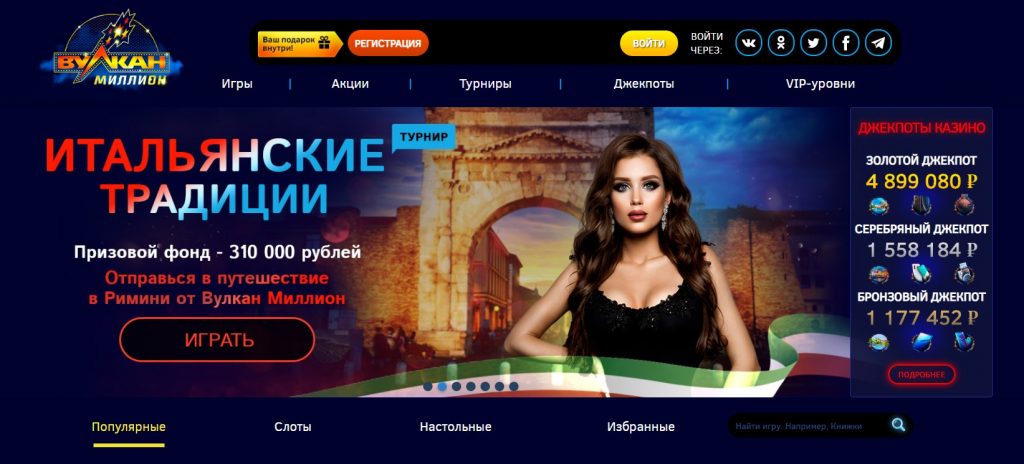 Казино Вулкан Миллион входит в целую сеть игорных порталов с аналогичным названием.