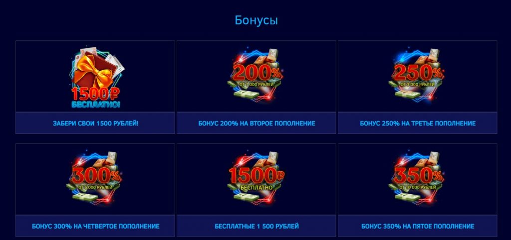 - За депозит минимум на 5 тысяч рублей посетители получат дополнительно 300 процентов, а также полторы тысячи за отыгрыш по указанному вейджеру.