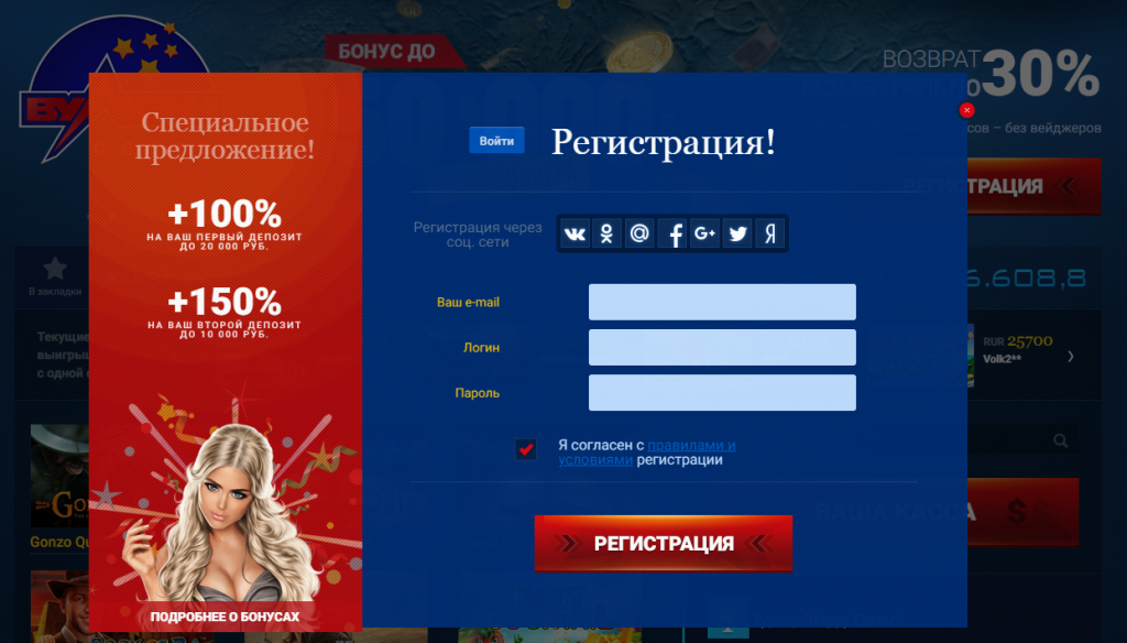 Вулкан Слотс - вход на официальный сайт, зеркало