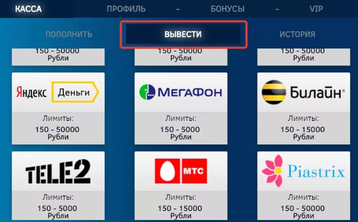 Для вывода используют такие же способы, плюс Вебмани. Минимальный лимит 300 руб., в день выплачивают до 30 000 RUB. Идентификация пользователей проводится по запросу от службы безопасности – игрок получает личное сообщение на email.