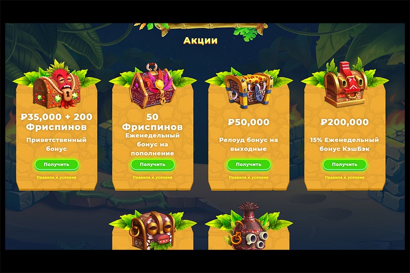 Сразу после регистрации игроки могут получить различные приветственные бонусы. Также в онлайн-казино предусмотрены всевозможные поощрения для постоянных пользователей. Все клиенты могут участвовать в квестах и получать подарки в виде фриспинов, коинов или реальных денег.
