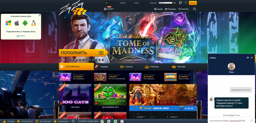 Обзор официального сайта ZigZag777 casino