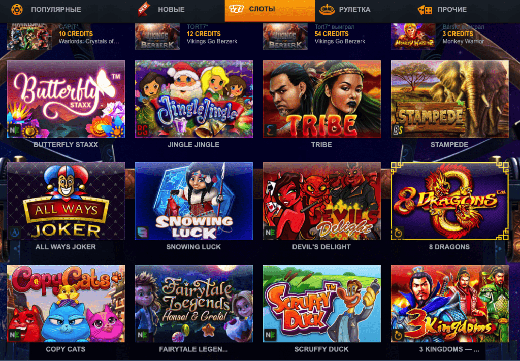 Любители видео-слотов будут довольны выбором казино. Их настолько много, что опробовать все не получится. Более того, ассортимент игровых моделей постоянно обновляется, поэтому бывалые гемблеры не будут скучать. Средняя отдача слотов на портале составляет 96,1%.