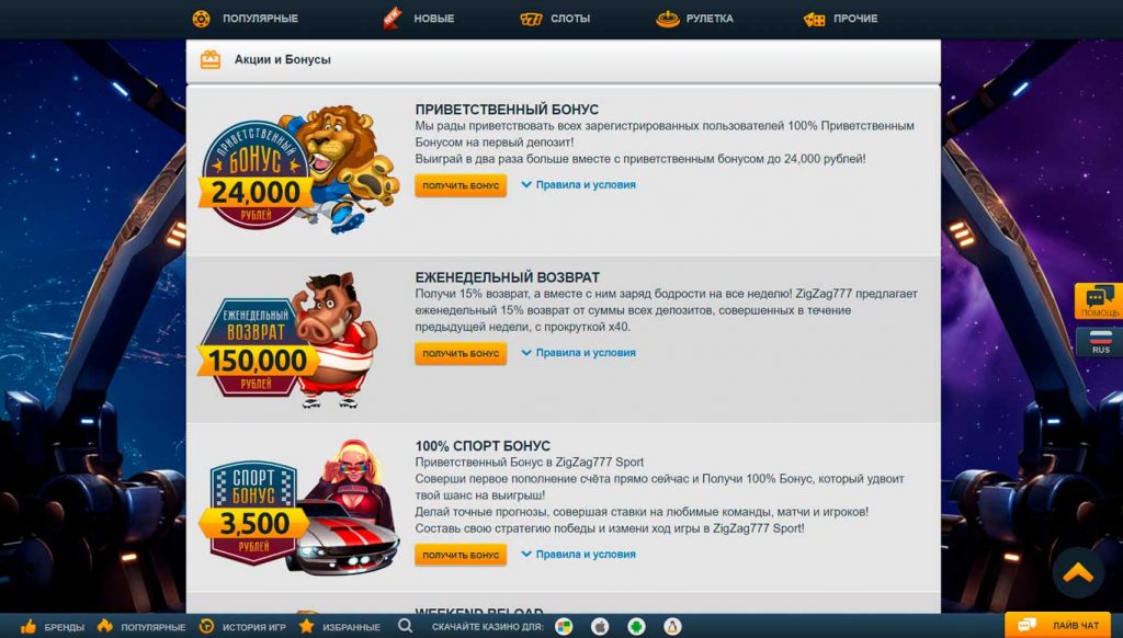 Бонусы и акции для игроков ЗигЗаг777