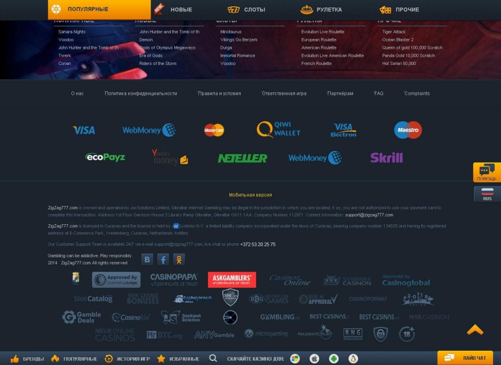 ZigZag777 casino - обзор официального сайта и бонусов клуба