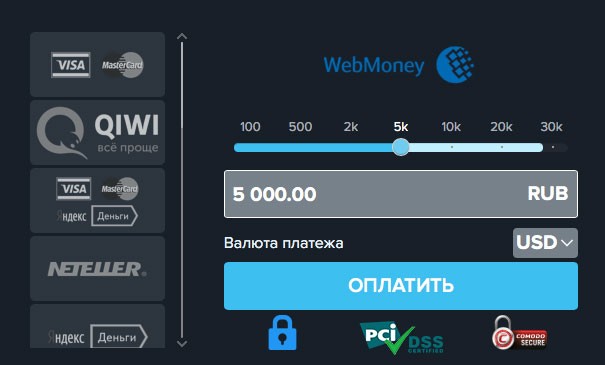 Далее надо перейти в раздел «Касса», выбрать пополнение счета, выбрать систему WebMoney. Перед игроком появится форма, в которой надо будет указать сумму депозита, а также номер кошелька. Минимальная и максимальная сумма депозита, как правило, тоже отображаются.