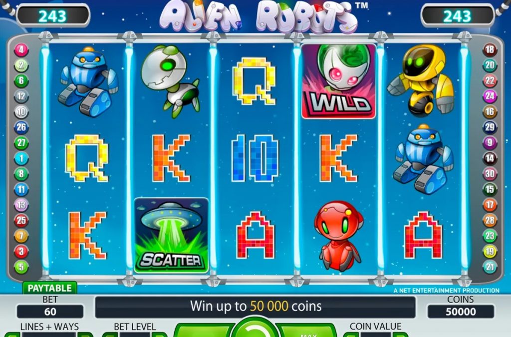 Игровой автомат Alien Robots от NetEnt уносит пользователя в далекое будущее, где миром правят роботы различных размеров и цветов. Некоторые обладают уникальной способностью растягиваться, что позволяет создать больше активных и оплачиваемых цепочек, а другие же запускают бесплатные вращения после своего появления.