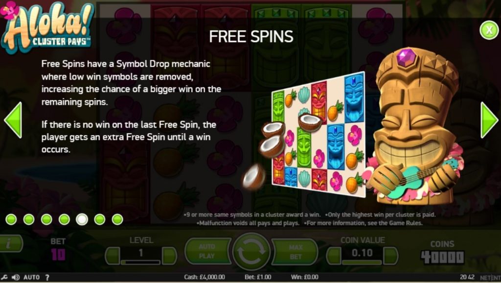 Чтобы сыграть в игровой аппарат Aloha: Cluster Pays, стоит посетить одно из азартных заведений, которое использует программное обеспечение провайдера Net Entertainment. В слот можно поиграть бесплатно и без регистрации, либо создать учетную запись и попытаться выиграть большие деньги.
