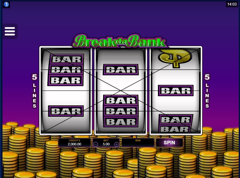 Также в слоте Break da Bank засчитывают выигрышные комбинации при выпадении одной, двух или трех пиктограмм с надписью «Bar». За одну картинку игроку дадут 10 кредитов. За два повторения на счет запишут 40 монет, а три одинаковые иконки гарантировано принесут гемблеру 80 ставок.