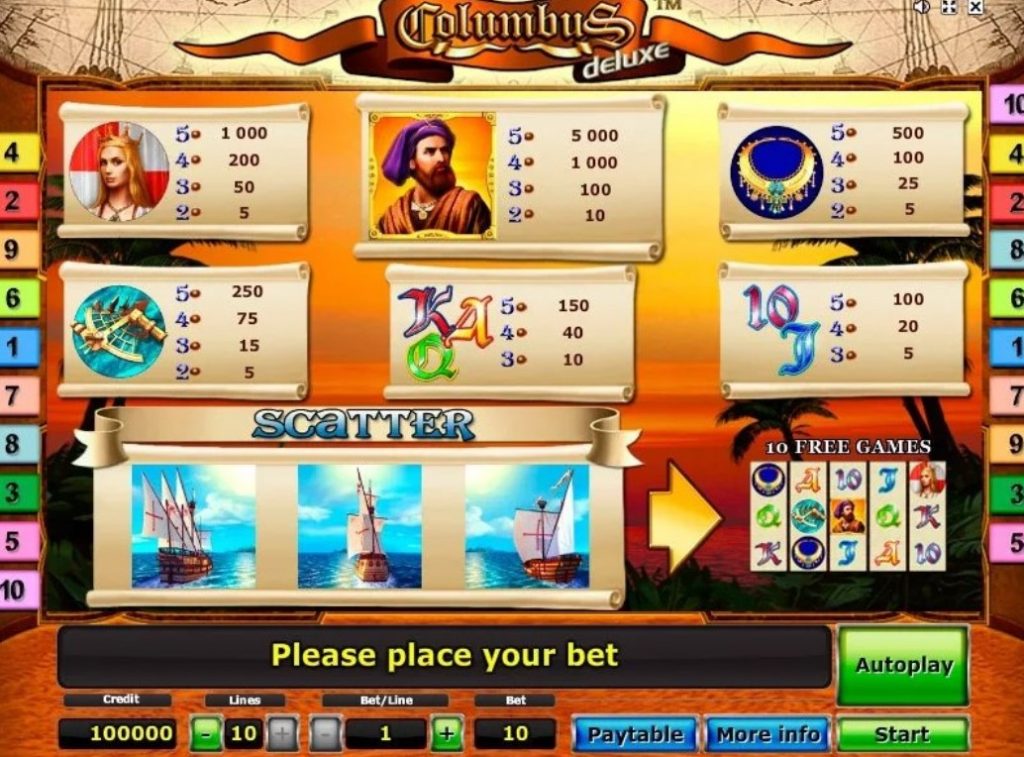 Если нужно поиграть в симулятор Columbus Deluxe бесплатно, то достаточно найти казино, в котором есть софт этого провайдера. Регистрироваться и пополнять счет не обязательно, потому что ставки делают в виртуальных монетах.
