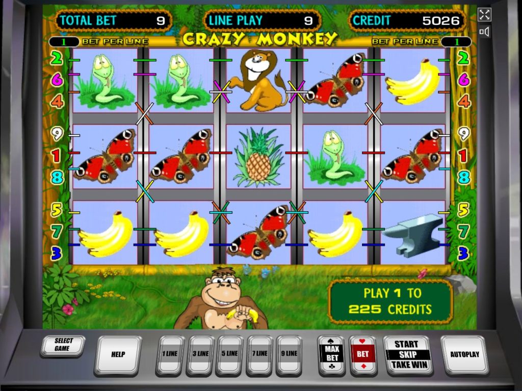 - В качестве бонусного символа в слоте Crazy Monkey использована картинка с изображением обезьянки. При совпадении минимум трех иконок активируется бонусная игра.