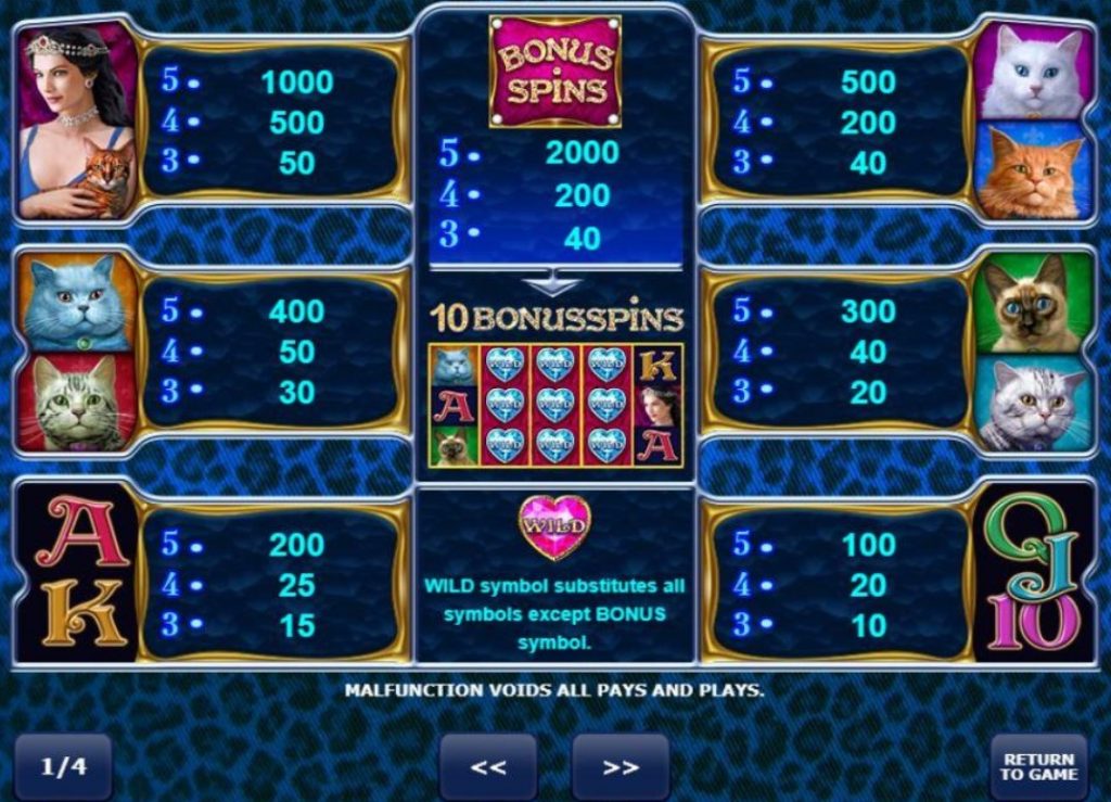 - За три и более белые кошки игрока вознаградят в размере 40, 200 либо 500 ставок.