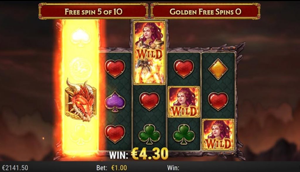 Символ с изображением Девы – повелительницы драконов является вайлдом. Дикий символ может растягиваться на поле и занимать три ячейки. Функции скаттера выполняет пиктограмма с драконом. При выпадении 3-5 символ-разбросов игрок получает 8, 10 либо 12 бесплатных вращений.
