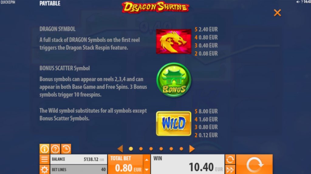 Даже активным гемблерам достаточно трудно уследить за новыми слотами, которые выпускает компания QuickSpin. Один из последних игровых автоматов на деньги, который стремительно набрал популярность, это Dragon Shrine (другое название – Храм Дракона).