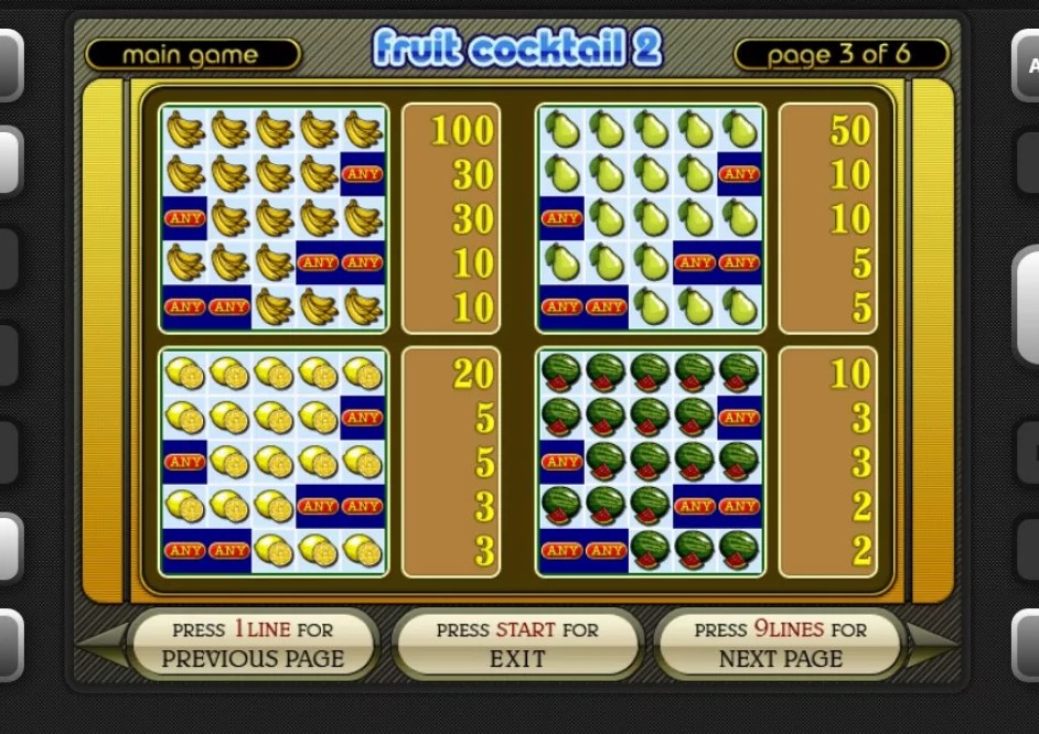 Технические параметры игровой машины Фруктовый коктейль 2: