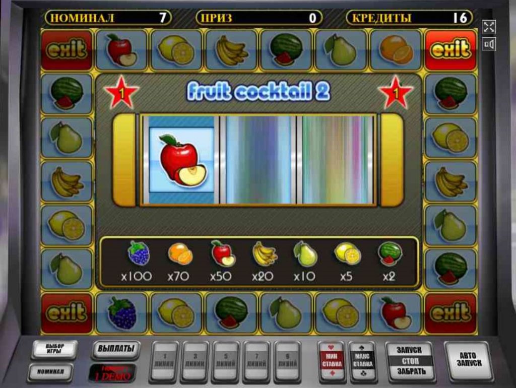 Чтобы поиграть в игровой аппарат Fruit Cocktail 2, стоит посетить любое отечественное азартное заведение, которое использует лицензионное программное обеспечение компании Игрософт. Автоматы этого производителя часто встречаются в казино, входящих в сеть Вулканов.